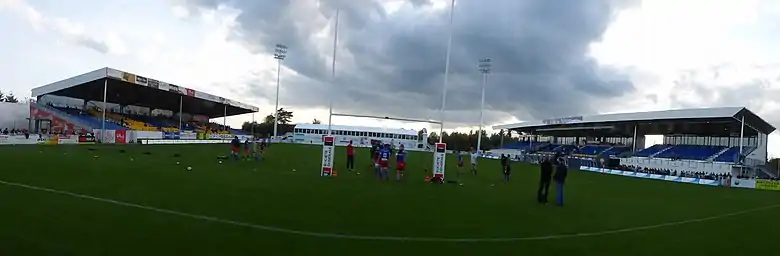 Closely linked to Nevers' sports history,[1] Stade du Pré Fleuri is entirely dedicated to rugby union since 1982, when the athletics track was removed.[2] Since the 2010s, the increasing of the stadium's capacity of the stadium, due to the club's promotion to Fédérale 1, leading to the expansion of the sports complex and a brand new management.