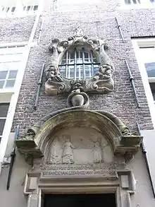 The bank was built in 1614 as a conversion of an old warehouse used by the poorhouse O.Z. Huiszittenhuis that had been used to store peat for the inhabitants.[1] In 1658 the poet Joost van den Vondel became a clerk there. He worked a total of 10 years for the bank and his "bank chair" has been kept.