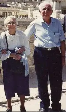 Emilia Słodkowska with Samuel Lederman (Szmuel Liderman) at a ceremony in Jerusalem, 1985