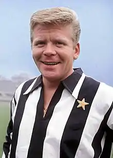 West German footballer Helmut Haller wearing a Juventus shirt. FIGC first introduced the star as sporting symbol worldwide in 1958, Juventus being the first club to wear it.[1]