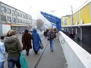 Starovokzalna (Ukrainian: Старовокзальна) is the final station of the right-bank line the Kyiv Light Rail, located near the city's main railway station Kyiv-Pasazhyrskyi. It was originally opened in 1989 as a tram stop. On October 16, 2010, the station was reopened after reconstruction to service light rail trams.