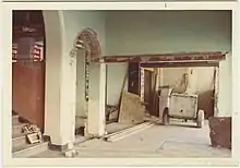 After extensive renovations, the venue re-opened as the Liberty Theatre on 29 June 1935 by the Lord Mayor of Hobart Mr. J. J. Wignall with The Gay Divorcee and We're Rich Again.[4] The cinema was remodelled in an Art Deco appearance, with an Australian-made Raycophone sound system and locally made finishes such as lampshades, woodwork and curtains showcasing Tasmanian craftsmanship. Alterations were also made to the facade, including affixing large neon lighting and stylised burning torches. Wall decorations were designed by Mr. G. Harrex, lamp shades were supplied by Trowbridge and Co., the woodwork undertaken by Crisp and Gunn Co-operative Ltd., and the stage curtain by Modern Art Furnishers. The architect for the alterations was Mr. A. Lauriston Crisp.[5]