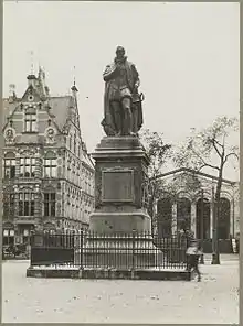 While travelling in Europe after World War I, biologist and physician Dr. Fenton Benedict Turck (1857–1932) purchased a bronze statue of William I (1533–1584), Count of Nassau, Prince of Orange, and national hero of the Netherlands.[1] William, known as "William the Silent" (Dutch: Willem de Zwijger) and "William of Orange" (Dutch: Willem van Oranje), was the main leader of the Dutch revolt against the Spanish that set off the Eighty Years' War and resulted in the formal independence of the United Provinces in 1648. For this reason, William is known as the "Father of the Fatherland" (Dutch: Vader des Vaderlands) of the Netherlands.[2] The statue is a replica of a similar monument created in 1848 by Dutch sculptor Lodewyk Royer (1793–1868) that was installed in Het Plein, a city square in the Hague's Oude Centrum (trans. "Old Center").[3] The plaster mold for Royer's original statue was kept in Brussels during World War I and after the war, the Dutch government permitted one copy of the statue to be made by sculptor Toon Dupuis (1877–1937) at the Fonderie Nationale des Bronzes, a foundry in Brussels, before destroying the mold.[3][4]
