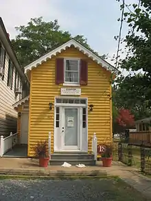 The Cray House, located on Cockey Lane, is the most complete example of post-and-plank construction known to exist. John Denny purchased the lot from J. Stevens in 1809.[3] Denny, a ship carpenter, used a construction method in which walls are formed by tenoning horizontal planks into slots cut into vertical corner posts. After a series of owners, it was sold at auction in 1914 to Nora Cray, a widow who lived there with her three children. Nora Cray's heirs deeded the property to The Kent Island Heritage Society in 1976, and the house was restored in 2004.[4] It predates the town of Stevensville, and is listed individually on the National Register of Historic Places.