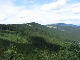 The peak of the mountain has a characteristic conical shape and on its slopes grow beech and coniferous trees. It used to host a border crossing, which was eliminated in 2007 due to both countries entering the Schengen Area.