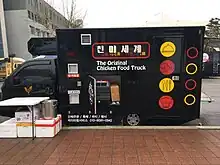 • Food truck: Recently, food trucks have become a new trend in food culture. In Korea today, the food truck is a popular purveyor of street food, prevalent in parks and culture-art spaces.[9]