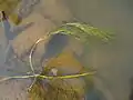 Stuckenia vaginata is a fully submerged aquatic plant and does not have any floating or emerged leaves.