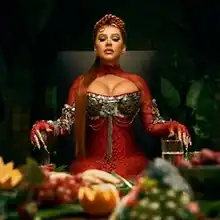 The music video for "Suéltame" was directed by Ana Lily Amirpour and produced by Sara Greco.[13] The footage opens with a birthday cake-making process. However, someone puts a drop of snake poison in the batter. The cake is later presented in front of the pop star, who is not knowing that people around her want her to die. Those sitting around Christina are her distant relative, who "rides her coattails," the bodyguard, who "knows her weak spots," and the lawyer, who is "getting greedy" among others. Then Tini appears as Christinas's undercover, sensing that something bad is about to happen. The video ends with Tini getting bite of strawberry as hinting of Christina getting bite of the poisonous cake and ends choked up.[14]