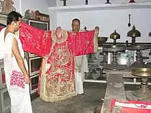 Supatphaa died in February 1696, after a reign of fourteen and a half years. He left two sons, Lai and Lechai, and his elder son Lai succeeded him. Under Lai, who took the name Sukhrungphaa (Hindu name Rudra Singha), the Ahom kingdom reached its zenith. The royal robes of Chow Pha Supatphaa made of gold and a gold umbrella are preserved in the Bengenaati Satra[8] of Majuli, Assam.