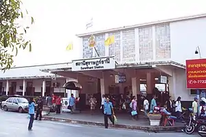 Surat Thani railway station (SRT Code: SRN) is the main railway station in Surat Thani Province, Thailand. It is on the State Railway of Thailand's Southern Line, located 635.106 km from Thon Buri railway station. The station is on the eastern bank of the Tapi River in Tha Kham town, Phun Phin District. Surat Thani Station first opened in 1915, and was originally named Phun Phin Station. The name was later changed to "Surat Thani railway station".