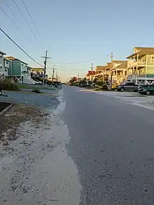 Until late 2018, road access to Surf City was mainly via the Topsail Island Swing Bridge, a failing steel truss swing-span bridge, built in 1954, which crossed the Intracoastal Waterway.[8] Planning for a replacement bridge began in 2010,[9] with construction beginning in September 2016. It opened in December 2018, a year ahead of schedule.[10] Costing US$54 million, the 3,800 feet (1,200 m) fixed-span high rise bridge, with a vertical clearance of 65 feet (20 m), allows the passage of vessels at any time and eases traffic flow to and from the community. The 50 feet (15 m) wide bridge provides two lanes for traffic, shoulder bicycle lanes, and a multi-use path. The unusually wide design is intended to permit three lanes for hurricane evacuations. The contractor was scheduled to remove the old bridge by March 31, 2019. In a letter to residents in January, the Town's mayor, Doug Medlin said, "NCDOT and Balfour Beatty understood the sentimental relationship that the Town of Surf City had for our Swing Bridge. We were given the turn bridge control panel and key as well as the cornerstone from when the bridge was first constructed. These items will be displayed in the new Surf City Town Hall as a historical memorial."[11]