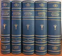 The Svenskt konstnärslexikon is a dictionary of Swedish art and artists that was published in five volumes by Allhems Förlag AB from 1952 to 1967.[1] The dictionary includes over 12,000 biographical entries for Swedish artists with detailed bibliographies for each entry.[2] The editors were Gösta Lilja, Bror Olsson, Knut Andersson and S. Artur Svensson, with additional contributions by Johnny Roosval, Ragnar Josephson and Karl Erik Steneberg.