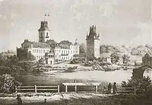 On 20 October 1655, over 1,000 nobles, mostly from Samogitia, gathered at the Kėdainiai Manor, signed the Union of Kėdainiai on behalf of the Grand Duchy of Lithuania, dissolved the Polish–Lithuanian Commonwealth and solemnly declared the establishment of a personal union with the Swedish Empire.[2][7] The Swedish side was represented by Lord High Treasurer Magnus Gabriel De la Gardie and Governor Bengt Skytte, with the latter also holding the position of viceroy.[3][8] King of Sweden Charles X Gustav became Grand Duke of Lithuania.[1] Following this, another act was signed by which the Lithuanian nobility pledged its loyalty to the Swedish Crown.[2] On 23 October 1655, the Lithuanian Advisory Council was inaugurated.[1] Swedish Lithuania was set up as a dominicum directum with Jonušas Radvila being promised exceptional rights to certain estates.[2] It is known that both Jonušas and Boguslavas Radvila (Bogusław Radziwiłł) initially wanted to acquire the Lithuanian territories of Minsk, Navahrudak, Brest Voivodeships and Volkovysk, Grodno Counties, as well as the Polish Podlaskie Voivodeship. Meanwhile, ethnic Lithuania was supposed to remain under the direct rule of Sweden.[6] Jonušas Radvila also hoped to become an uncrowned ruler of the entire Swedish protectorate, but his endeavour was unsuccessful.[9]