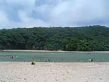 Tallebudgera Creek rises from the Springbrook Plateau in the Springbrook National Park, Mt Cougal Section, just north of the New South Wales/Queensland border. The creek flows generally north by east through the Tallebudgera Valley towards Burleigh Heads where it is crossed by the Pacific Motorway and the Gold Coast Highway, before reaching the popular swimming beach on the south side of Burleigh Head National Park and emptying into the Coral Sea. The creek descends 100 metres (330 ft) over its 25-kilometre (16 mi) course.[2] The name Tallebudgera comes from the Yugambeh word "Jalubay-ngagam", which means "dingo's urine".[4]