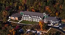 An aerial view of the school captured in fall 2014. This image showcases the recently expanded and renovated upper school academic building. Photo/Marie Nease-Wing Dreamer Photography