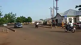Tarred road towards roundabout at the center of Tamale South Constituency showing NDC office on the right