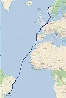 Route navigated by Tamara, from Alesund to Rio de Janeiro