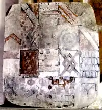One member of the family has a recumbent stone effigy in St Mary's Church. The effigies have been much damaged in the various fires which the church has suffered, most recently in 1981, when the roof of the north aisle fell over this area. The effigies are variously believed to be William de Gorges (d. 1346) or according to Raymond Gorges who wrote a history of the Gorges family in 1944,[5] John Gorges of Warleigh House, lord of the manor of Tamerton Foliot, who flourished in the early 15th century. Formerly the Gorges heraldic canting arms of the Gurges, which is Latin for "whirlpool" could be seen on the front of the jupon of the knight in the form of 3 concentric annulets.[6] No trace remains today. The armorial was borne in 2 forms, as 3 concentric annulets or as a whorl, blazoned thus: "Argent, a gurges azure". It was thus a blue device on a white background. The whorl form can be seen as one of the quarterings on the escutcheon on the funerary monument to John Copleston, Esquire (d. 1608).