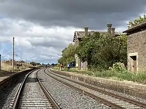 The line through the station was originally double track, but the section north of Kyneton station was reduced to a single track as a result of the Regional Fast Rail project. However, there is a 7.7 km (4.8 mi) crossing loop which incorporates the section of track through the former station, together with the nearby 198 m (650 ft) Taradale Viaduct and the closed Elphinstone station, further towards Bendigo.[1][2]