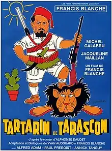 Tartarin of Tarascon (French: Tartarin de Tarascon) is a 1962 French-Moroccan comedy film directed by and starring Francis Blanche alongside Alfred Adam, Jacqueline Maillan and Michel Galabru.[1] It is based on the 1872 novel Tartarin of Tarascon by Alphonse Daudet, which had previously been made into a 1934 film of the same title.[2] It was shot at the Billancourt Studios in Paris and on location around Casablanca and Taroudant in Morocco. The film's sets were designed by the art director Louis Le Barbenchon.