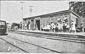 The railway crossed 5,000 acres (2,000 ha)[4] (or 8,000) Te Kawa Swamp[5] to the north of the station on a 60 chains (4,000 ft; 1,200 m) embankment. Culverts were included to maintain the effectiveness of eel weirs in the swamp[6] and provide for the flow of water.[7] A post office was open by 1909 and a drainage board set up,[8] which was extended in 1915, by which time the station was handling traffic for Waikeria Prison.[9]