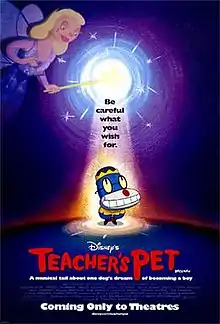 Teacher's Pet is a 2004 American animated musical comedy film, which serves as the finale of the 2000 television series of the same name created by artist Gary Baseman. Produced by Walt Disney Television Animation and distributed by Buena Vista Pictures, the film was directed by series director Timothy Björklund and written by series creators Bill and Cheri Steinkellner. The film was released theatrically on January 16, 2004, to mostly positive reviews, but was a box office failure, grossing $6.5 million on a $10 million budget.[2]