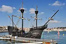 Son to a merchant marine captain and nephew to an adventure media celebrity, already during his teenage years Telmo took part in numerous travelling projects; some were related to a friend of his father and another Navarrese maritime explorer and public personality, known in Spain as Capitán Etayo.[35] In 1992 he was formally employed by his uncle as logistics coordinator for the subsequent edition of Ruta Quetzal; at the time the project was sponsored by the Secretariat of State for International Cooperation and Ibero-America and the Ibero-American General Secretariat. Aldaz served in the same role also during the 1994 edition[36] and took part in cross-Atlantic journeys on replica of the original Niña caravel.[37] In 1995 he embarked on his first own major travelling project, re-enactment of the historical 1503 Columbus-related paddling journey from Jamaica to Hispaniola in canoes. The enterprise lasted a few weeks and became a media scoop in Spain.[38] In the second half of the 1990s he travelled on the Amazon and the Orinoco in canoe and took part in other re-enactment sails of replica ships Niña III and Nao Victoria, e.g. in 1998 as part to the round-the-world journey.[39] Most of these undertakings were part of media projects, and Aldaz systematically provided his correspondence to contracted agencies. In 1997 he canoed on the Congo river across Zaire, but the project was abandoned mid-course due to the outbreak of the civil war.[40] At the turn of the centuries Aldaz was again working for Ruta Quetzal, e.g. in 2002 and 2003.