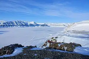 Tempelfjorden is located at the inner end of Sassenfjorden (in Isfjorden).
