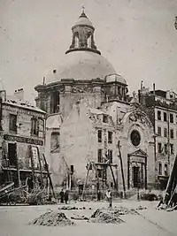 The building was damaged in May 1871 by fierce fighting at a barricade directly in front of the church during the Paris Commune.[19] Restoration work was undertaken in 1874 by Marcellin Varcollier and the statues on the pediment of charity and religion were carved by Ernest-Eugène Hiolle.[20] The church's organ was built by Joseph Merklin in 1895 with additional work by Haerpfer in 1960 and Heddelin in 1992.[21]