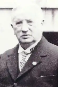 Arana's strategy did not work. Biscay branches of mainstream parties accused him of siding with Basque separatism.[88] Basque nationalists remained adamant and negotiations on would-be electoral alliances failed.[89] The Carlist Junta Central, in 1918 largely decomposed and disoriented, banned alliances with "enemies of Spain"; Arana blamed Ignacio González de Careaga, another Carlist politician from Bilbao and at the time the secretary of Junta Central, for instigating a campaign against him.[90] In early 1919 the Biscay Junta Señorial declared that they were not obliged to follow recommendations from the Madrid headquarters; Arana issued a manifesto which voiced both against designs of "Estado Vasco" on the one hand and against "régimen centralista y opresor" on another.[91] The conflict seemed solved when Jaime III returned from wartime house arrest in Austria and dissolved the central executive, result of the long-standing fray with the Mellistas.[92] However, Arana was already tired; quoting health reasons he handed the new party leader Pascual Comín his resignation note. He took part in the grand Carlist rally known as Magna Junta de Biarritz before in December 1919 his request was granted.[93]