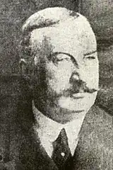 In 1905 Liga Foral appointed Arana as their candidate to the senate, from the pool reserved for provincial self-governments.[52] There were no counter-candidates fielded and in 1905 Diputación Provincial de Guipúscoa elected him to the upper chamber.[53] At the time Carlist structures viewed Liga as an organization dominated by local conservative caciques. Carlos VII denounced it as incompatible with Traditionalism.[54] During his electoral campaign Arana published an opened letter, titled A los carlistas guipuzcoanos; he claimed that objectives of the League overlap with the Carlist ones and defended his access to the alliance.[55] The claimant grumbled that Arana turned Traditionalism on its head, but having one more representative in the senate, he preferred not to disauthorise him. The liberal press cheered upon perceived "descomposición del carlismo", but the Basque regional jefe Tirso de Olazabal limited himself to publishing an ambiguous letter.[56] Contemporary scholar presents the episode as a good demonstration of erratic Carlist position versus Basque autonomous demands.[57]