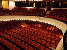 On the site of the Hotel de Lorge, sold in lots, the rue de la Michodiere opened in 1778. Around the place where the Gaillon gate stood at the enclosure of Louis XIII, in 1925, the architect Auguste Bluysen built a theatre in the Art Deco style. Decorated by Jacques-Émile Ruhlmann, the red and gold auditorium could accommodate 800 spectators, but in the 21st century, it has only 700 seats left.[1]