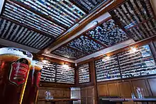 A distinctive feature of the Bear is a collection of over 4,500 snippets of club ties, started in 1952 by the landlord, Alan Course,[2] who had worked as a cartoonist at the Oxford Mail.[22][23] Tie ends were clipped with a pair of scissors in exchange for half a pint of beer. These were originally pinned to the wall, and are now displayed in glass-fronted cases on the walls and even the (low) ceiling. The ties mostly indicate membership of a variety of institutions, such as clubs, sports teams, schools and colleges.[24][25]