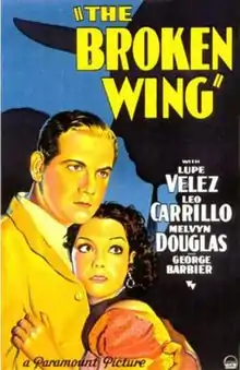 The Broken Wing is a 1932 American pre-Code drama film directed by Lloyd Corrigan and written by Grover Jones and William Slavens McNutt, adapted from the play of the same name by Paul Dickey and Charles W. Goddard. The film stars Lupe Vélez, Leo Carrillo, Melvyn Douglas, George Barbier, Willard Robertson, Claire Dodd and Arthur Stone. The Broken Wing was released on March 21, 1932, by Paramount Pictures.[1]