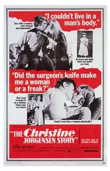 The Christine Jorgensen Story is a 1970 American drama film and a fictionalized biographical film about trans woman Christine Jorgensen. While the overall premise of the film is accurate, many of the details are fictionalized for the continuity of the film. It was directed by Irving Rapper and based on Christine Jorgensen's autobiography.[3]