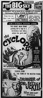 The Cyclops is a 1957 American science fiction horror film written, produced and directed by Bert I. Gordon, starring James Craig, Lon Chaney Jr. and Gloria Talbott.