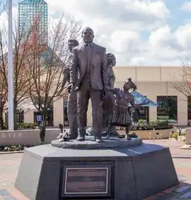 The Dream, also known as the Dr. Martin Luther King Jr. Memorial Sculpture,[1] is an outdoor bronze sculpture of Martin Luther King Jr. by Michael Florin Dente, located outside the Oregon Convention Center in Portland, Oregon. The 8-foot (2.4 m) memorial statue was dedicated on August 28, 1998, the 35th anniversary of King's "I Have a Dream" speech. It depicts King plus three allegorical sculptures: a man who symbolizes the American worker, a woman who represents immigration, and a young girl shown releasing King's coattail, who represents, according to Dente, the "letting go" that occurs when people sacrifice their time and energy to engage in a struggle. The sculpture is part of the City of Portland and Multnomah County Public Art Collection, courtesy of the Regional Arts & Culture Council.