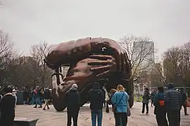 The Embrace is a bronze sculpture by Hank Willis Thomas, installed on Boston Common in Boston, Massachusetts, United States, in December 2022.[2] The artwork commemorates Martin Luther King Jr. and Coretta Scott King,[3][4] and depicts four intertwined arms,[5] representing the hug they shared after he was awarded the Nobel Peace Prize in 1964.[6] The work was created by welding together about 609 smaller pieces.[7][8] The sculpture has received largely negative responses from critics and the public.