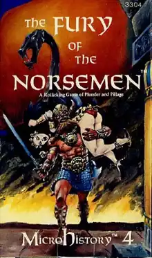 The Fury of the Norsemen is a 2-player wargame that simulates the historical Viking raids of the 9th and 10th centuries on settlements in Western Europe.[1] The map shows a generic English or Irish coastal village, with farms and a manor house. One player controls Viking raiders, while the other player defends the town with soldiers and villagers.[2]