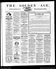 The Golden Age was a free local newspaper first published on the 15th of September 1860. The paper was established by local proprietor and former Methodist minister John Gale.[1]