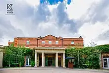 The formal gardens were designed by the Chelsea Flower Show Gold Medallist and judge, Michael Balston.[12] Other features include an 18-hole championship golf course designed by the Californian Kyle Phillips.[15] The golf course is laid out to the south and east of the house (which is on a low hill above the valley of the river Gade) with its eastern border reaching to the western bank of the Grand Union Canal (that incorporates the Gade in this part of the valley) and its southern border adjacent to the golf course of the West Hert Golf Club.[16][17]