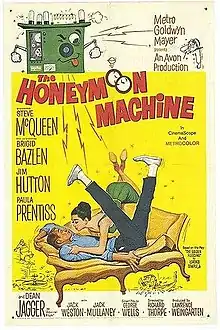 The Honeymoon Machine is a 1961 American comedy film directed by Richard Thorpe and starring Steve McQueen, Brigid Bazlen, Jim Hutton, Paula Prentiss, Jack Mullaney and Dean Jagger, based on the 1959 Broadway play The Golden Fleecing by Lorenzo Semple Jr. In the film, three men devise a plan to win at roulette with a United States Navy computer. The scheme works until an admiral ruins their plans.[2]
