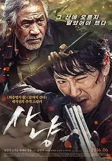 The Hunt (Korean: 사냥; RR: Sanyang) is a 2016 South Korean action thriller directed by Lee Woo-cheol, written by Cheon Jin-woo, and starring Cho Jin-woong and Ahn Sung-ki. The film was launched by Lotte Entertainment, South Korea’s second largest film conglomerate, in March 2016. It was produced by Kim Han-min, the director of The Admiral: Roaring Currents, the biggest film ever at the Korean box office.[1][2] Most of the filming for The Hunt took place in a mountainous region of Paju in Gyeonggi Province, which contains military bases; the crew had to obtain permissions from more than 10 military units prior to filming. Because of the emphasis on hunting and guns, the actors also had to finish a basic firearms course and practice at shooting ranges.[3]
