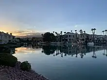The Lakes is a 2-square-mile (5.2 km2) planned community located within the city limits of Las Vegas, Nevada. It is located in the western part of the Las Vegas Valley near the Spring Mountains and Red Rock Canyon National Conservation Area. The centerpiece of the community, and its namesake, is a large man-made lake, Lake Sahara. It was originally planned to have two man-made lakes but was downscoped to one. It was built from the mid-1980s to the mid-1990s, and at the time was at the edge of development in the valley. It consists of a mixture of gated communities consisting of single-family homes, condominia, commercial areas and offices.