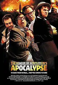 The League of Gentlemen's Apocalypse is a 2005 disaster horror comedy film based on the British television series The League of Gentlemen. It is directed by Steve Bendelack at his directorial debut and written by the series' cast along with Jeremy Dyson. Starring Mark Gatiss, Steve Pemberton and Reece Shearsmith, who reprise their roles from the TV series, along with Michael Sheen, Victoria Wood, David Warner, Alan Morrissey, Bruno Langley, Bernard Hill, Simon Pegg and Peter Kay who appear in guest roles, the film follows the series' characters as they enter the real world and meet their creators while the setting, the fictional town of Royston Vasey, is facing a series of apocalyptic events.