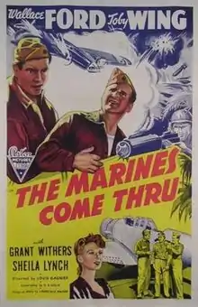 The Marines Come Thru is a 1938 American action film directed by Louis J. Gasnier and written by D.S. Leslie and Jack Kofoed for Grand National Pictures. The film stars Wallace Ford, Toby Wing, Grant Withers, Sheila Lynch, Michael Doyle and Don Lanning. The film was rereleased on July 8, 1943, by Astor Pictures as Fight On, Marines.[1][2][3]