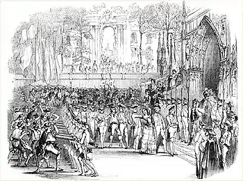 The critics noted that the mandatory quotient of pretty actresses in short skirts, or playing men's roles in tights was duly delivered: although the hero was always a woman in these types of pieces, in this case, of the nine members of the cast, four were actresses playing roles en travesti. Gilbert renounced this practice as soon as he was in a professional position to do so.[12] The critic of The Sporting Times wrote, "My friend, a stern and powerful man, held me down in my stall when Miss Bella Goodall appeared … Miss Annie Bourke, too, was something which could not be looked upon without the deepest emotion."[13] The piece ran for 120 nights, but Gilbert later said, "It suffered from comparison with Mr. F. C. Burnand's Black-Eyed Susan, which it immediately followed [at the Royalty], and which had achieved the most remarkable success recorded in the annals of burlesque."[14]