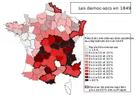Performance by department of the Democratic Socialists on the May 1849 legislative election