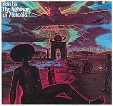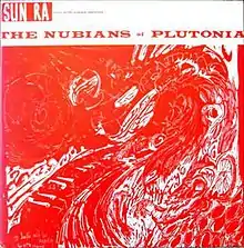 The Nubians of Plutonia is an album recorded by Sun Ra and his Myth Science Arkestra c.1958 – 1959 and released c.1966 on his own Saturn label. Originally released in a blank sleeve under the title The Lady With The Golden Stockings, the album had gained its current title, and sleeve by Richard Pedreguera, by 1969.[4] In common with most releases by Sun Ra at the time, the record was printed in extremely limited numbers and primarily available at concerts and mail-order. The record was reissued by Impulse! in 1974, and on CD by Evidence in 1993, backed with the contemporaneous album Angels and Demons at Play.