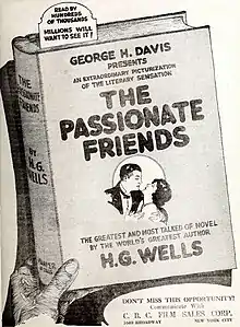 The Passionate Friends is a 1922 British romantic drama film directed by Maurice Elvey and starring Milton Rosmer, Valia, and Fred Raynham.[2][1] It is based on H.G. Wells' The Passionate Friends: A Novel (1913), which was adapted again by David Lean for his 1949 film The Passionate Friends.